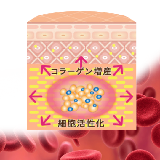 放出した成長因子が、コラーゲンやエラスチンを作り出す線維芽細胞に働きかけ、活性化させます。